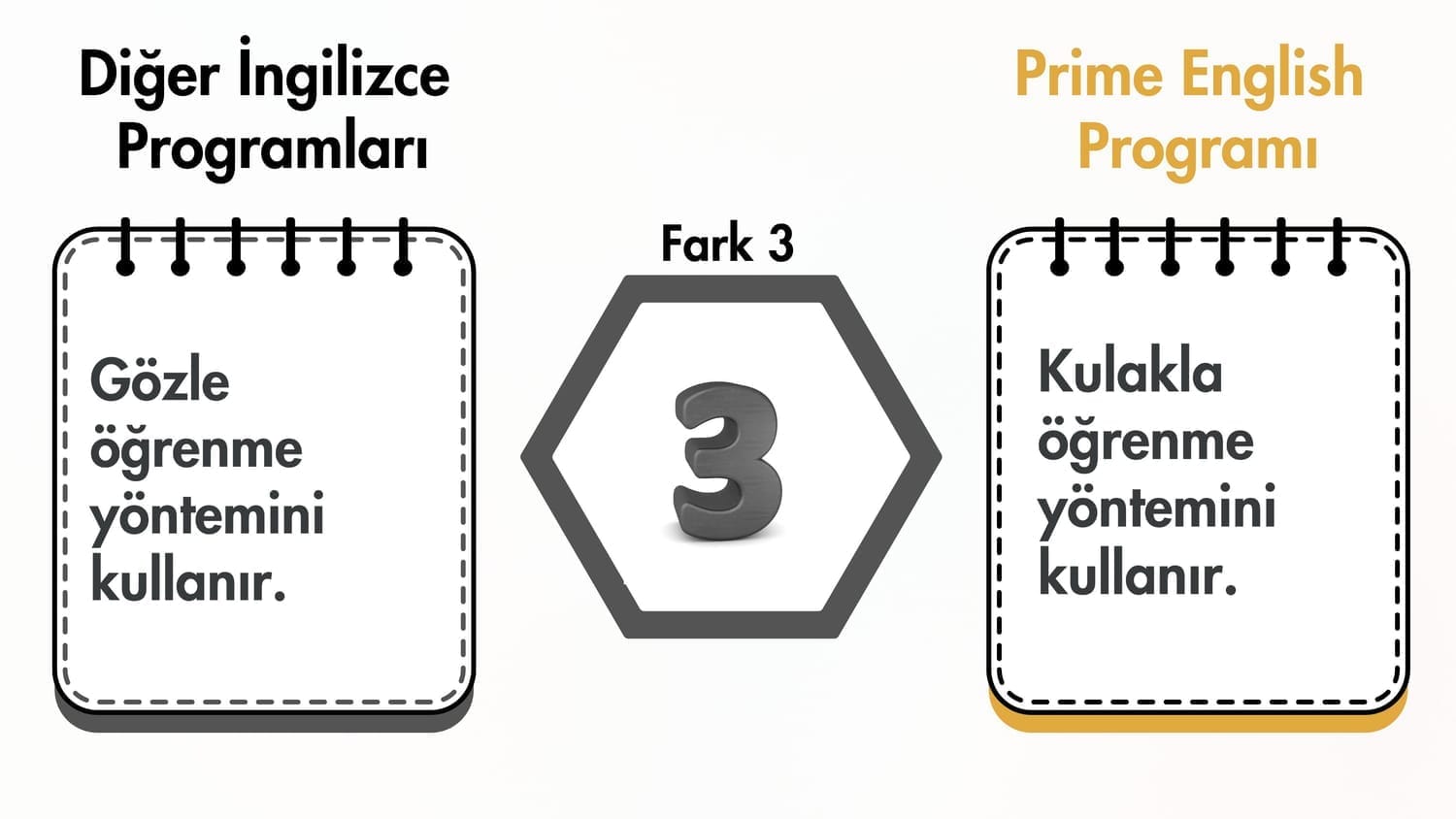 Çok Önemli Not: Eğitim programımızda okuma ve yazma becerisi bir miktar gelişsede biz buna odaklanmıyoruz. Net bir şekilde İngilizceyi anlama ve konuşma becerileri üzerinde duruyoruz. Eğer okuma ve yazma becerisi hedefiniz varsa kursumuza kaydolmamalısınız!