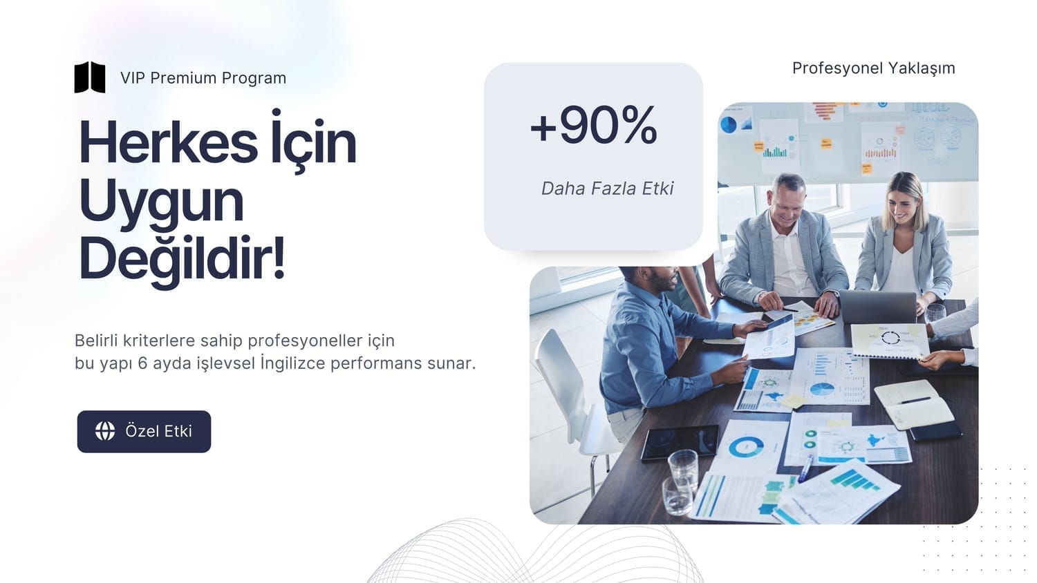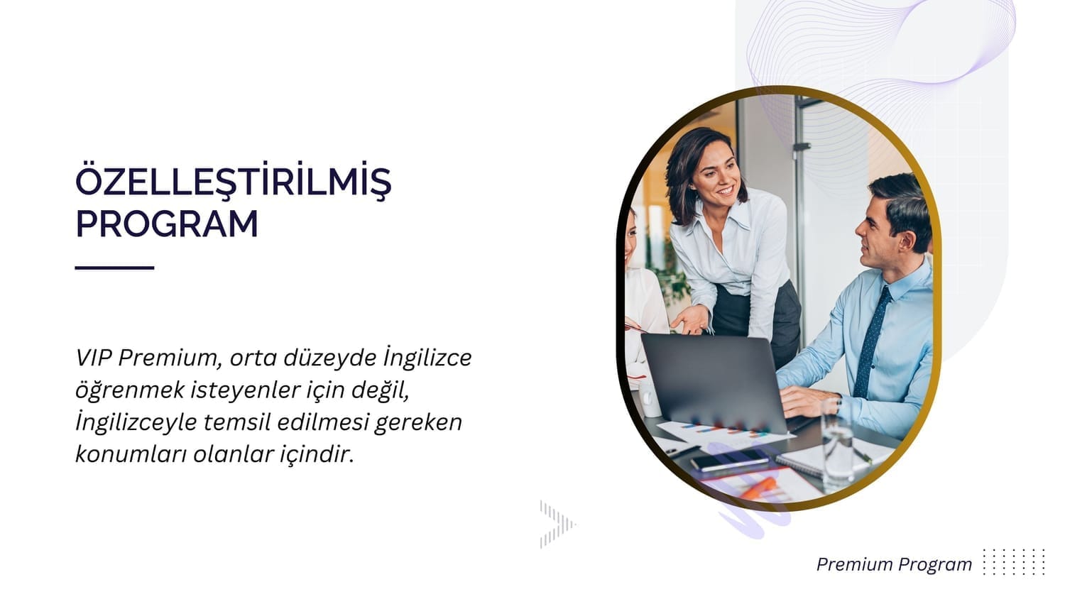 VIP Premium, orta düzeyde İngilizce öğrenmek isteyenler için değil, İngilizceyle temsil edilmesi gereken konumları olanlar içindir.